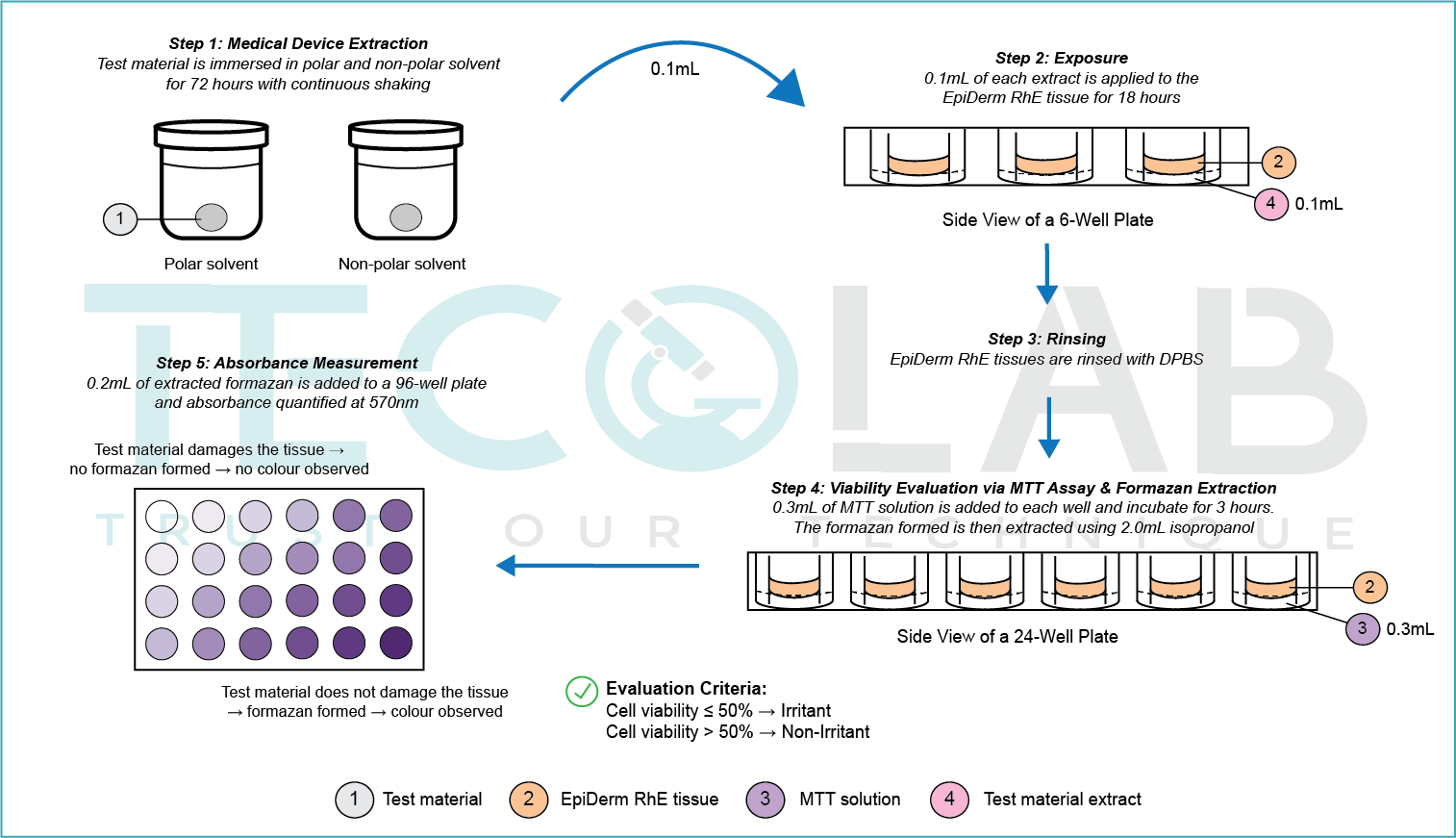 Skin irritation testing according to ISO 10993-23 is conducted using the EpiDerm model, which utilizes Reconstructed Human Epidermis (RhE). This method replaces ISO 10993-10, which relied on animal models, aligning with ethical considerations regarding animal testing.
